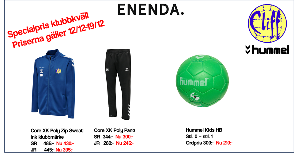 I samband med denna hade vi vår materialleverantör Enenda på plats för där spelare och tränare hade möjlighet att prova storlekar och känna på material. Enenda hade kvällen till ära ett erbjudande till klubben som gäller veckan ut, så passa på att utnyttja detta om ni har behov av ny jacka eller byxa.